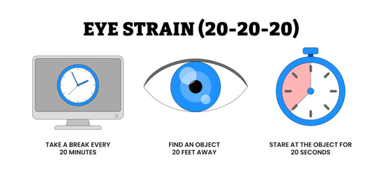 If your eyes feel tired or dry, try the 20 20 20 rule: Every 20 minutes, look 20 feet away for 20 seconds.